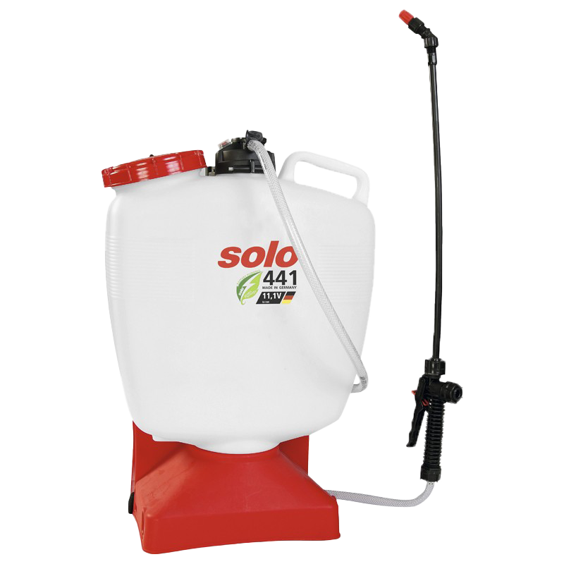 El pulverizador de mochila inalámbrico SOLO 441 de la línea Classic es silencioso, sin emisiones y con pocas vibraciones. Con un peso en vacío de 3,8 kg incluyendo la batería, este modelo es absolutamente ligero. Tiene una batería de iones de litio que es compacta, fuerte y liviana y proporciona 170 minutos de funcionamiento continuo. La batería compacta intercambiable es fácilmente accesible desde el exterior y se puede quitar fácilmente para cargarla en el cargador externo. La batería se recarga en solo 2 horas. Para evitar que la contaminación llegue a los contactos, un resorte cierra la tapa del compartimiento de la batería. La bomba eléctrica de 11,1 V genera una presión de pulverización de 2,5 bar de forma rápida y eficiente.