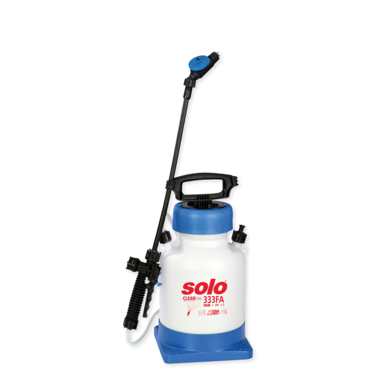 La junta FKM del pulverizador de espuma es adecuada para la aplicación de agentes de limpieza espumables ácidos en el rango de pH 1-7. El contenedor ligero y muy robusto es resistente a los rayos UV, cubre 4 litros y está equipado con una base sólida. Gracias a la gran abertura y la escala claramente visible, es posible un llenado preciso y fácil.