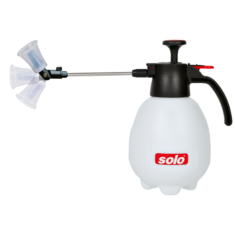 El pulverizador manual SOLO 402 de la línea Comfort-Line tiene controles grandes de forma ergonómica que también se pueden operar cómodamente con guantes. El recipiente transparente, muy robusto, tiene una capacidad de 2 litros y tiene una gran abertura de llenado, para que nada falle al llenarlo y vaciarlo. La marca de nivel de llenado permite que el pulverizador manual se llene exactamente. Los pies evitan que se vuelque, incluso cuando está lleno.
